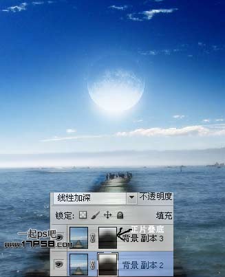 9、复制背景层,挪到图层顶部,图层模式线性加深,添加蒙版用黑色柔角笔刷涂抹,ctrl+J复制一层,图层模式改为正片叠底。