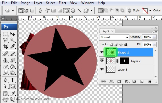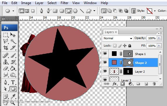 8、按Shift键,同时选中圆和五角星两个图层,图层/合并图层(Ctrl+E)。