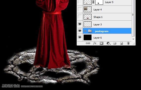 17、按Shift将“土地”和“裂缝”的图层选中,Ctrl+G将它们放到一个图层组里面,命名为“裂缝”。
