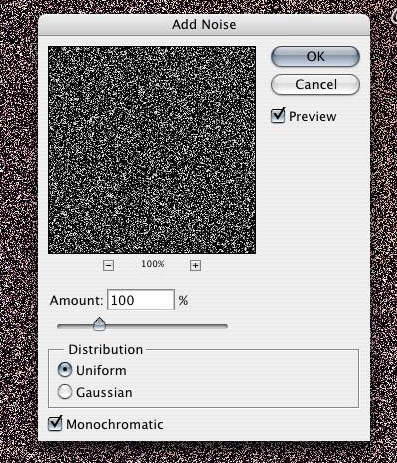按Ctrl/Cmd+A来选择整个画布,然后,按Shift + F5激活填充对话框,以此来填充整个图层。填充时使用黑色(#00000)。然后执行滤镜>杂色>添加杂色