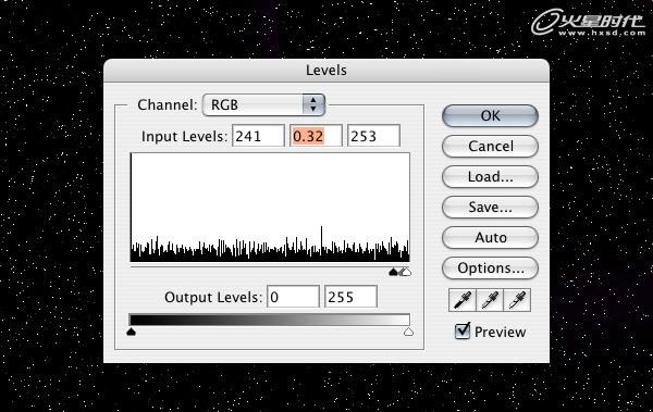 + L),如下图我的设置,将输入调整为241,0.32和253 。这样做可以去除一些杂色,以减少星星数量并增加一点效果的真实感。