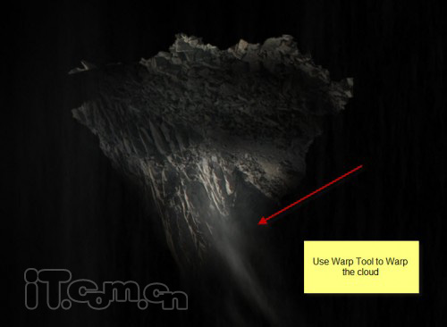 8、把云雾移动到山的底部,如图所示。