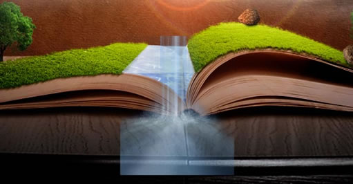 27、找一张瀑布的素材,调整位置和大小如下图。图层命名为“瀑布”。