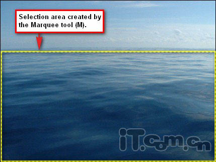 10、打开海洋素材,参考下图所示,选择相应的部分并复制到图片中。